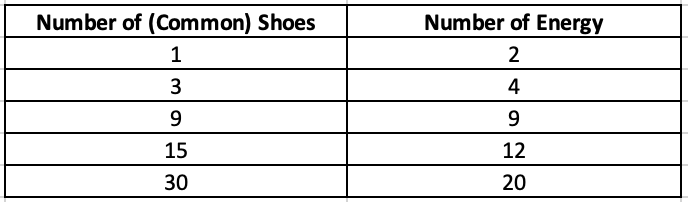 If you get 3 Rare shoes, you get 6 additional energy on top of the values in the first chart.